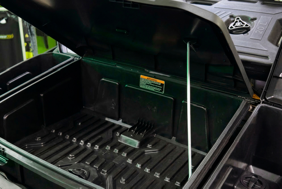 Задняя часть багги — ещё одна гордость и практическая деталь для любого путешественника. Надёжный кофр вмещает всё необходимое — от инструментов до небольшой палатки; внутри предусмотрены крепления-фиксаторы и поддерживающая крышку палочка для удобства доступа. По бокам расположены небольшие, но глубокие боксы для хранения аксессуаров, вещей, комплектов ремонта и других мелочей, важных в пути.