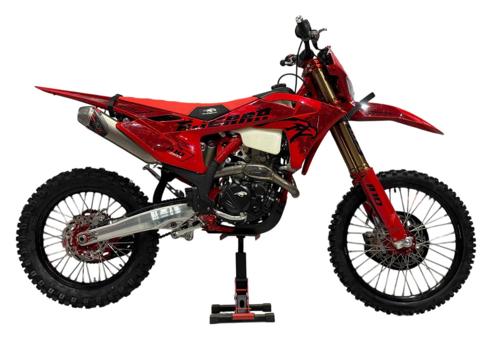 Мотоцикл AJERRA JOKER A10 YBS 300 — это современный эндуро нового поколения, созданный для тех, кто ценит сочетание мощности, управляемости и надёжности. Его сердце — двигатель Loncin 176FM YBS FM с водяным охлаждением, обеспечивающий стабильную работу даже при высоких нагрузках. Благодаря точной настройке и системе зажигания CDI мотор демонстрирует уверенную тягу и отличную отзывчивость на газ. Конструкция мотоцикла выполнена по образцу флагманских моделей KTM. Рама К10 от завода AJ1 — это точная копия KTM 2024 года, обеспечивающая прочность и устойчивость при езде по бездорожью. Пластик выполнен в стиле GAS-GAS 2024, придавая модели современный и спортивный облик. Подвеска — одно из сильных мест JOKER A10. Спереди установлена вилка HTW SCC длиной 930 мм с одним картриджем, а сзади — амортизатор HTW 2450, обеспечивающий отличную отзывчивость и стабильность на неровностях. Фрезерованные траверсы AJ1 2024, алюминиевая прогрессия и маятник делают конструкцию лёгкой, но прочной — идеальной для активного эндуро. Мотоцикл оснащён карбюратором Nibbi Racing PWK 34 Black, который обеспечивает точную подачу топлива и стабильную работу на любых оборотах. Тормозная система AJ1 с вентилируемыми дисками спереди и сзади гарантирует надёжное торможение, а усиленные обода 7116 UNISON и фрезерованные ступицы повышают устойчивость и долговечность конструкции. Из деталей — всё на уровне профессиональной техники: руль AL7075, алюминиевая звезда AL7075 51, цепь KMC 520 Pro, подножки AJ1 2025 (копия S3) и современная выхлопная система AJ1 2025. Каждая деталь продумана для лёгкости, прочности и надёжности. Электрооборудование включает в себя яркий свет 2 EYE LED Generation 4 (50W), литиевый аккумулятор Skyrich, цифровую приборную панель (копия KTM 2024), а также защиту мотора и рамы. Есть счётчик моточасов, заглушки руля, стропы и антискользящее сиденье AntiSkid — всё, что нужно для полного контроля над мотоциклом.. С высотой по седлу 94 см модель подойдёт для опытных райдеров, которые ищут технику с гоночным духом и максимальной управляемостью. AJERRA JOKER A10 YBS 300 — это мощь, стиль и надёжность, созданные для настоящих энтузиастов эндуро. Он дарит чувство свободы, уверенности и азарта в каждом километре..