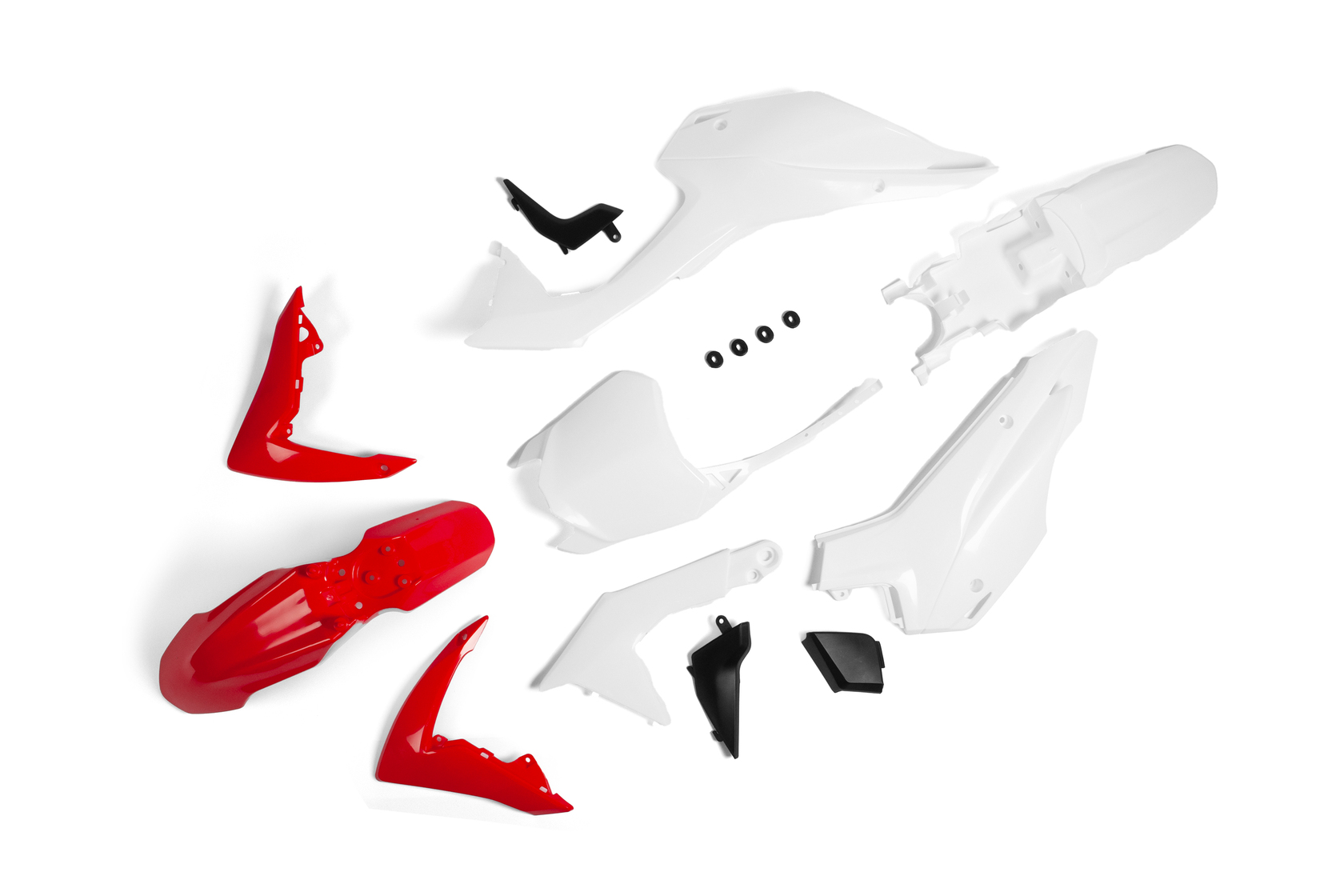 • Полный комплект пластика для питбайка типа CRF110 (BSE PH / WELS), цвет бело-красный