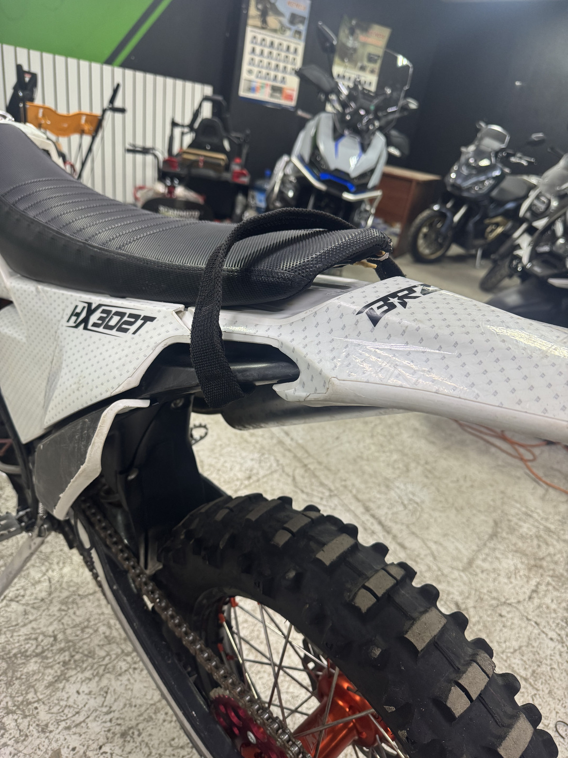Легендарный мотоцикл Дмитрия Бровкина. Данный мотоцикл покорил множество трасс топовых российских эндуро гонок, а также финишировал трассу этапа чемпионата мира Sea to sky в Турции. Этот мотоцикл создавался эндуристами для эндуристов, в нем собраны лучшие комплектующие, никаких компромиссов: на мотоцикле установлен двухтактный мотор Koshine 320 2t (KN320), который работает в паре с карбюратором MIKUNI TMX38. Такая связка выдает 50 л.с и позволяет заезжать на самые высокие горки. На BRZ HX 302t установлена одна из лучших китайских подвесок - HTW. Передняя вилка со всеми регулировками, перо 48 мм, закрытый картридж. Задний амортизатор также со всеми регулировками. Подвеска работает идеально, легко настраивается под любые требования. Что касается колес - на BRZ HX 302t стоят топовые алюминиевые обода Excel, идут вместе со алюминиевыми фрезерованными ступицами ККЕ и толстыми спицами. Мотоцикл защищен всеми необходимыми защитами - картер закрыт алюминиевой защитой, линк прогрессии и рама пластиковой защитой. Радиаторы охлаждения идут сразу с вентиляторами. Рычаги на BRZ HX 302t "неломайки". Рычаг сцепления гидравлический. Мотоцикл BRZ HX 302t получился отличным взбитым спортивным снарядом, вместе с которым можно преодолевать самые сложные преграды.BRZ HX 302t был привезен в РФ только для определенного круга эндуристов, так что у вас есть возможность получить отличный боевой мотик, сделанный "для своих".Состояние мотоцикла вполне хорошее для настоящего эндуро, который был создан покорять вершины.