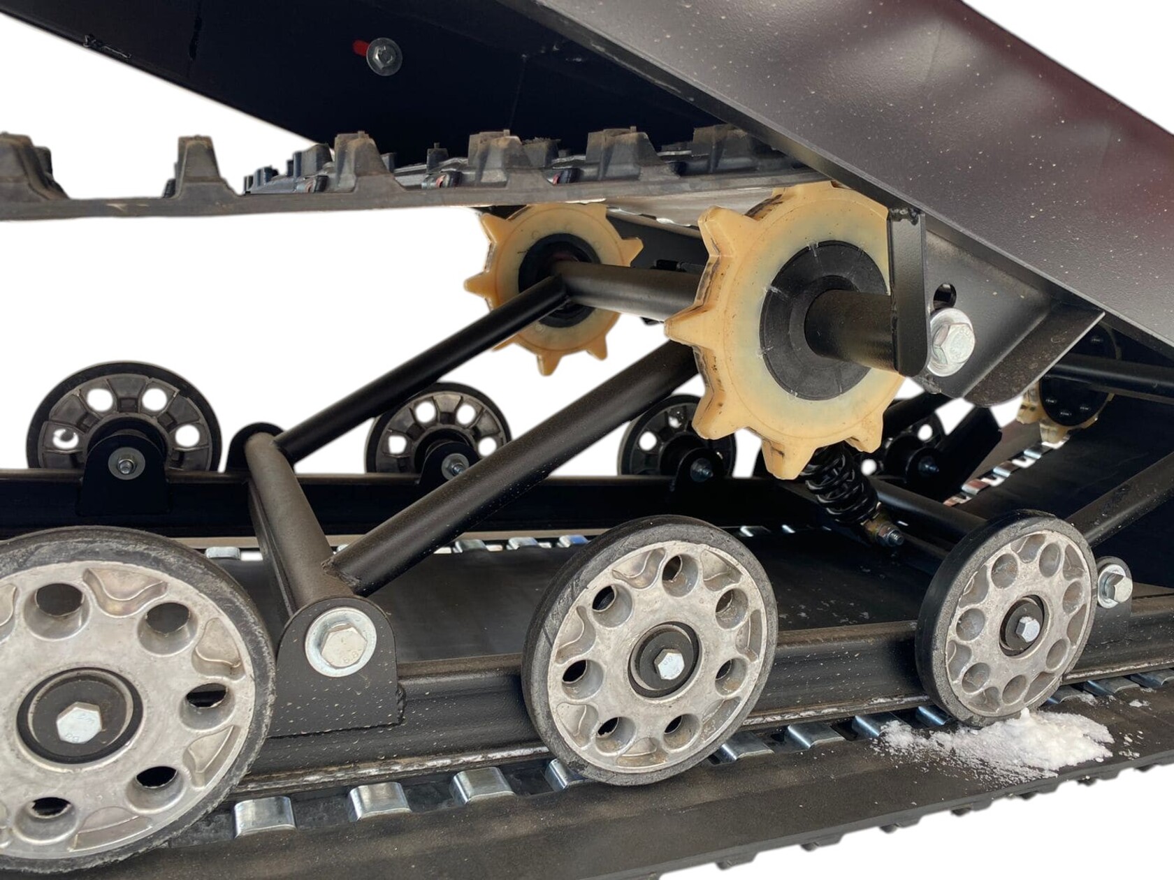 Флагманская новинка зимы 2023 «Бурлак Беркут CS» на склизовой подвеске.Ключевые особенности «Бурлак Беркут CS»:стильный дизайн,горизонтальное подмоторное основание,обновленный узел натяжки цепи, исключающий ее проскальзывание, электропроводка в гофротрубе, блок предохранителя,усовершенствованный конструктив передней подвески,металлическая защита рулевых тяг.В комплектацию входят:двигатель 20, 24 или 27 л.с. с передним расположением,гусеница LONG шириной 500 мм,склизовая подвеска,вариатор "Сафари",электричский запуск,гидравлический тормоз,реверс,2 металлические опорно-поворотные лыжи,спидометр, тахометр,2 основные фары, стоп-сигнал,прикуриватель,зеркала заднего вида.