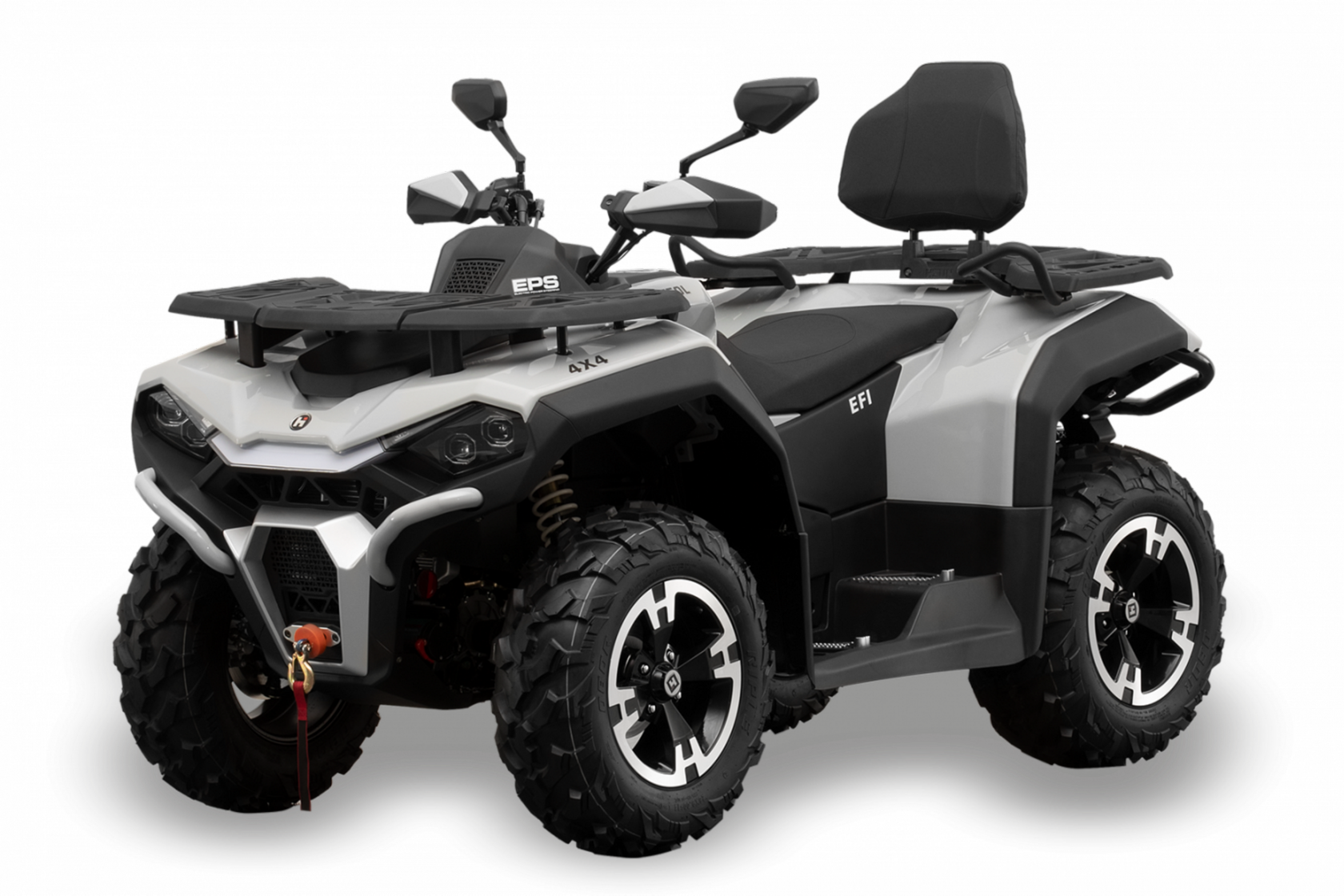 ДОПы Электроусилитель руля, Легкосплавные диски, Ключевой доступ, Передний и задний багажник с креплениями, Передний и задний силовой бампер, Лебедка (2500 lbs) с пультом д/у, кевларовый трос, Двухместное сиденье с подогревом, Зеркала, Спинка сиденья