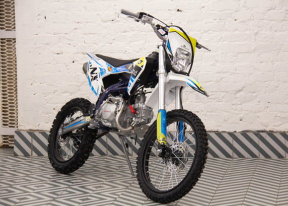 Недорогой надёжный питбайк APEX125 идеален для поездок по грунтовым дорогам и бездорожью. Хорошо чувствует себя на мягком и среднем грунте, разгоняется до 90 км/ч. Оснащён CNC траверсами, фарой, алюминиевыми ободами, весит всего 90 кг. Питбайк прост в управлении и не требует специального ухода, подойдёт как новичкам, так и любителям мотокросса.У кроссового мотоцикла APEX125 отличный узнаваемый дизайн. Конструкция подчёркивает неуступчивый спортивный характер питбайка, который не остановится ни перед одним препятствием. Пластик комбинированный, прочный, не ломается при сгибании. Кроссовый мотоцикл APEX125 доступен в красном и синем цвете, при этом в основной цвет окрашен не только пластик, но и обода колёс и другие детали питбайка.Передняя подвеска — телескопическая нерегулируемая вилка перевёрнутого типа, которая отлично подходит для преодоления ям, ухабов и других неровностей плохих дорог или их отсутствия. Задняя подвеска маятниковая с моноамортизатором. Руль 22 мм с высоким подъёмом и перекладиной удобен для мотоциклистов разного роста. Ручки руля — комфортные PRO TAPER. Питбайк оснащён складными рычагами сцепления и переднего тормоза, а также CNC-лапкой переключения передач.Питбайк весит всего 75 кг, при этом выдерживает вес до 150 кг. Оснащён CNC траверсами, рама полудуплексная стальная, мотоцепь качественная. Колёса спицованные, сделаны из прочного и лёгкого алюминия. Размер заднего колеса — 14 дюймов (350 мм), переднего — 17 дюйм (430 мм). Тормоза дисковые, передний тормозной суппорт двухпоршневой, задний — однопоршневой.Питбайк оснащён карбюратором с фильтром нулевого сопротивления VM22 MIKUNI и одноцилиндровым четырёхтактным двигателем с воздушным охлаждением. Надёжный мотор мощностью 9 л. с. и объемом 125 см³ разгоняет кроссовый мотоцикл APEX125 до 90 км/ч. Коробка передач механическая, четырёхступенчатая. Система зажигания электронная (CDI), для запуска двигателя можно использовать кикстартер.СверхпроходимостьПокрышки с шипами и высоким грунтозацепом идеальны для бездорожья. Мощность мотора и небольшой вес питбайка позволяют ему преодолевать значительные препятствия и непролазную грязь, хорошо заходить в подъёмы.Для поездок при низкой видимости и в ночное время суток питбайк оснащён фарой, которая включается при повороте замка зажигания (1 – выключить, 2 – включить, 3 – свет). Также в комплекте есть щиток для номера, который ставится вместо фары.Питбайк 125 относится к недорогим моделям, которые при должной эксплуатации работают без сбоев и капризов. Кросс неприхотлив в обслуживании, не занимает много места в гараже. При необходимости в нём легко сменить любую повреждённую деталь. Купить питбайк 125 вы можете в официальном магазине Мотолэнд, здесь же всегда можно приобрести запасные детали и комплектующие, которые стоят недорого и всегда есть в продаже. При покупке питбайка не забудьте о защитной экипировке.