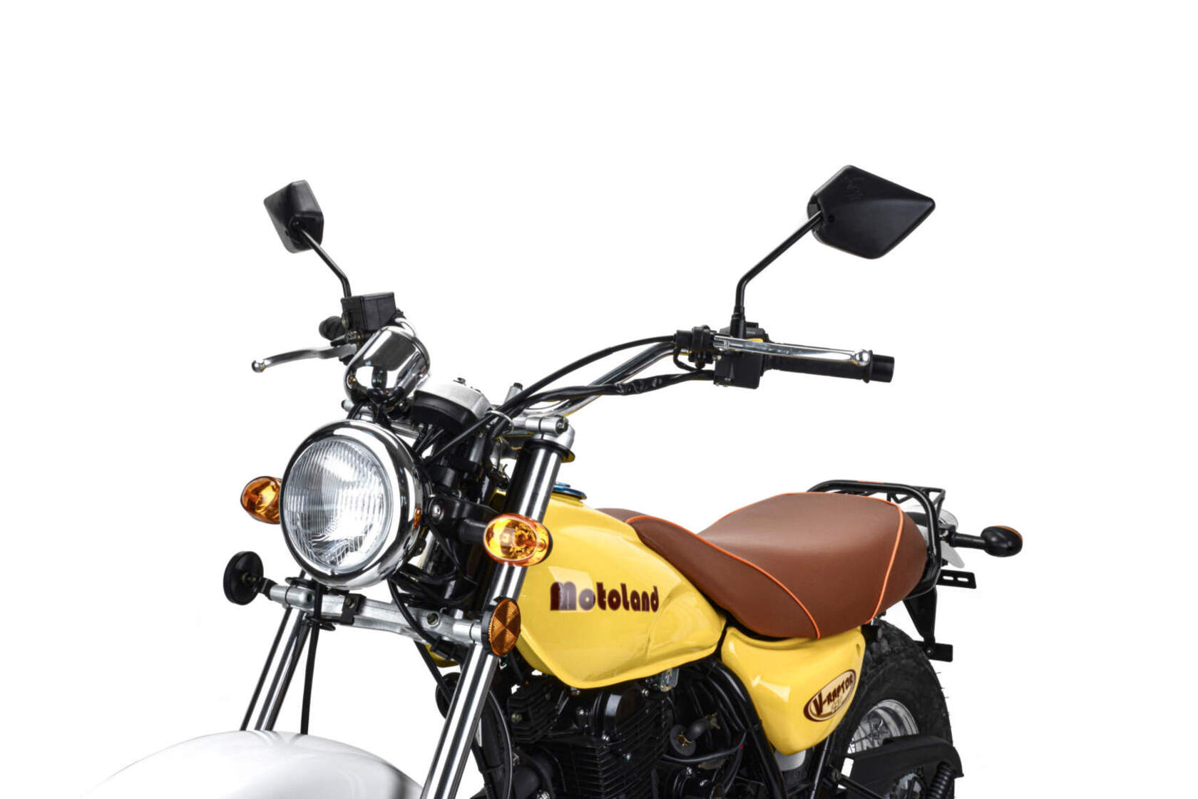 Классический дорожный мотоцикл от Motoland - снова в продаже. Идеален как для города, так и бездорожья. Вездеходные шины, с глубоких протектором, имеют увеличенное пятно контакта. Мотоцикл прекрасно держит дорогу. Двигатель укомплектован по европейскому образцу.Стальная рама, объем топливного бака 9 литров. Расход топлива 3 л. на 100кмОдноцилиндровый четырехтактный двигатель с балансирным валом - 172FMM CBB250 Zongshen. Система подачи топлива карбюратор. Трансмиссия механическая, шестиступенчатая.Подвеска передняя: Телескопическая. Подвеска задняя: моноамортизаторКолесные диски спицованные, размер колес — 18/14 дюймов.Зеркала, крепление под номер, подножки второго пассажира. Тормоза дисковые. Очень удобное седло. Фара, электростартер, замок зажигания, АКБ, поворотники, стоп-сигнал, электромеханическая приборная панель.Дополнительно, для России установлен масленый радиатор охлаждения двигателя. Мотоцикл легок в управлении и прекрасно подойдет, как в качестве первого городского, так и для покатушек по лесу и пересеченной местности.