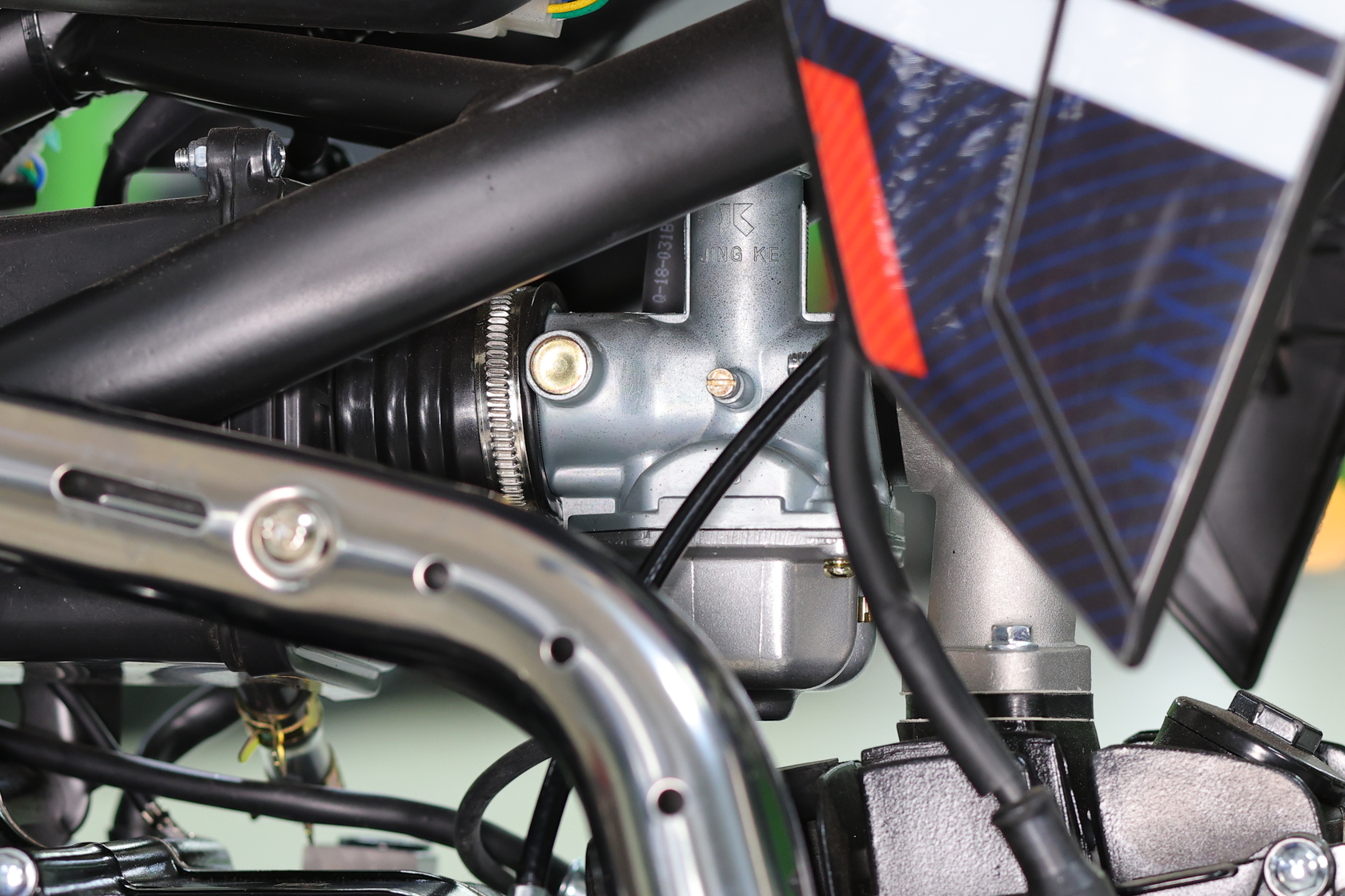 ДОПы Он оснащен четырехступенчатой механической КПП, а запуск может производиться как обычным кикстартером, так и электростартером. Подготовку топливной смеси производит карбюратор Jingke PZ26, используемый на многих моделях бренда.