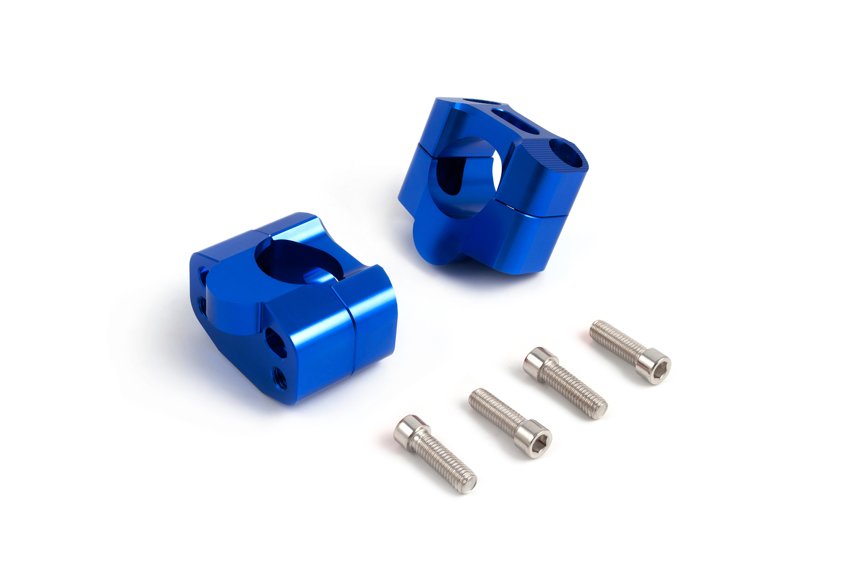 • Комплект переходников (проставок) синего цвета для установки руля диаметром 28 мм в стойки диаметром 22 мм. Выполняет двойную функцию: адаптирует посадочный диаметр и поднимает руль на 20 мм, улучшая эргономику управления. Идеальное решение для эндуро мотоциклов и питбайков.