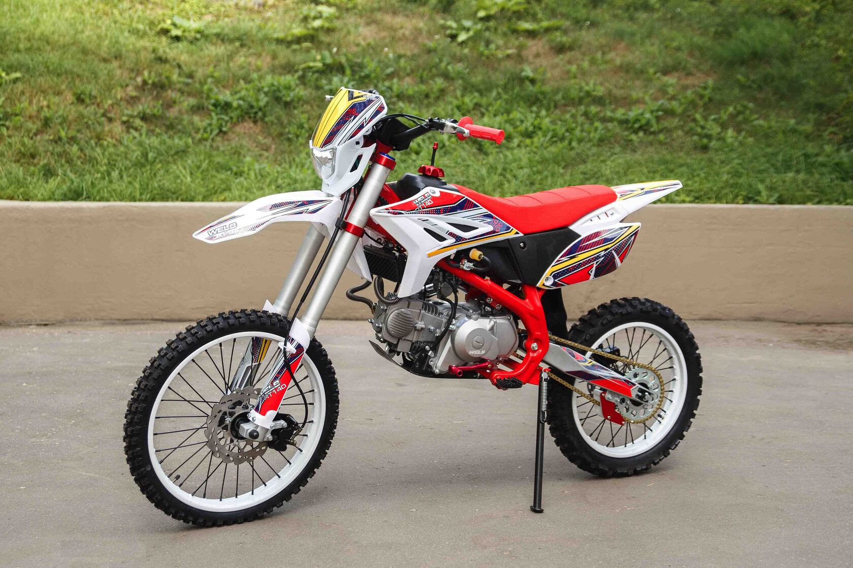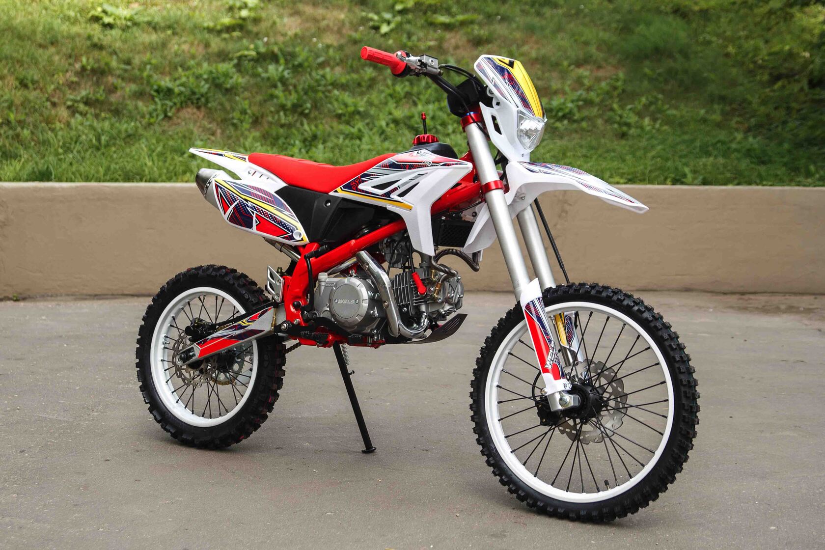 Новинка 2020 года от компании WELS.Новая модель построена на новой раме, питбайк в базовой комплектации включает в себя все необходимое, фара, моточасы, буксаторы, 428 цепь, внешний вид подчеркивает яркая графика.Пит-байк оснащен электростартером, качественным карбюратором KEIHIN, работающим в паре с фильтрбоксом, и надежным двигателем YX с электростартером. Из-за легкого веса питбайк очень прост в эксплуатации.Питбайк Wels 140сс предназачен для активных покатушек как в загородных условиях, так и по подготовленным трассам. Легкий вес мотика вкупе с резвым двигателем, способны для достижения любых результатов и в учебной езде и в продвинутом отношении, с максималкой до 100 км/ч!Техническая начинка пита от Wels как всегда на высоте; вилка-перевертыш, супер тормоза с армированными шлангами, злая off-road резина. С питбайком Wels вы подружитесь навсегда! Поставляется без ПТС, как спортинвертарь - не для дорог общего пользования.Отлично подойдёт как новичкам, так и опытным райдерамУ нас Вы можете купить этот мотоцикл с бесплатной доставкой по РФ и гарантией до года. Также его можно приобрести в рассрочку или в кредит.