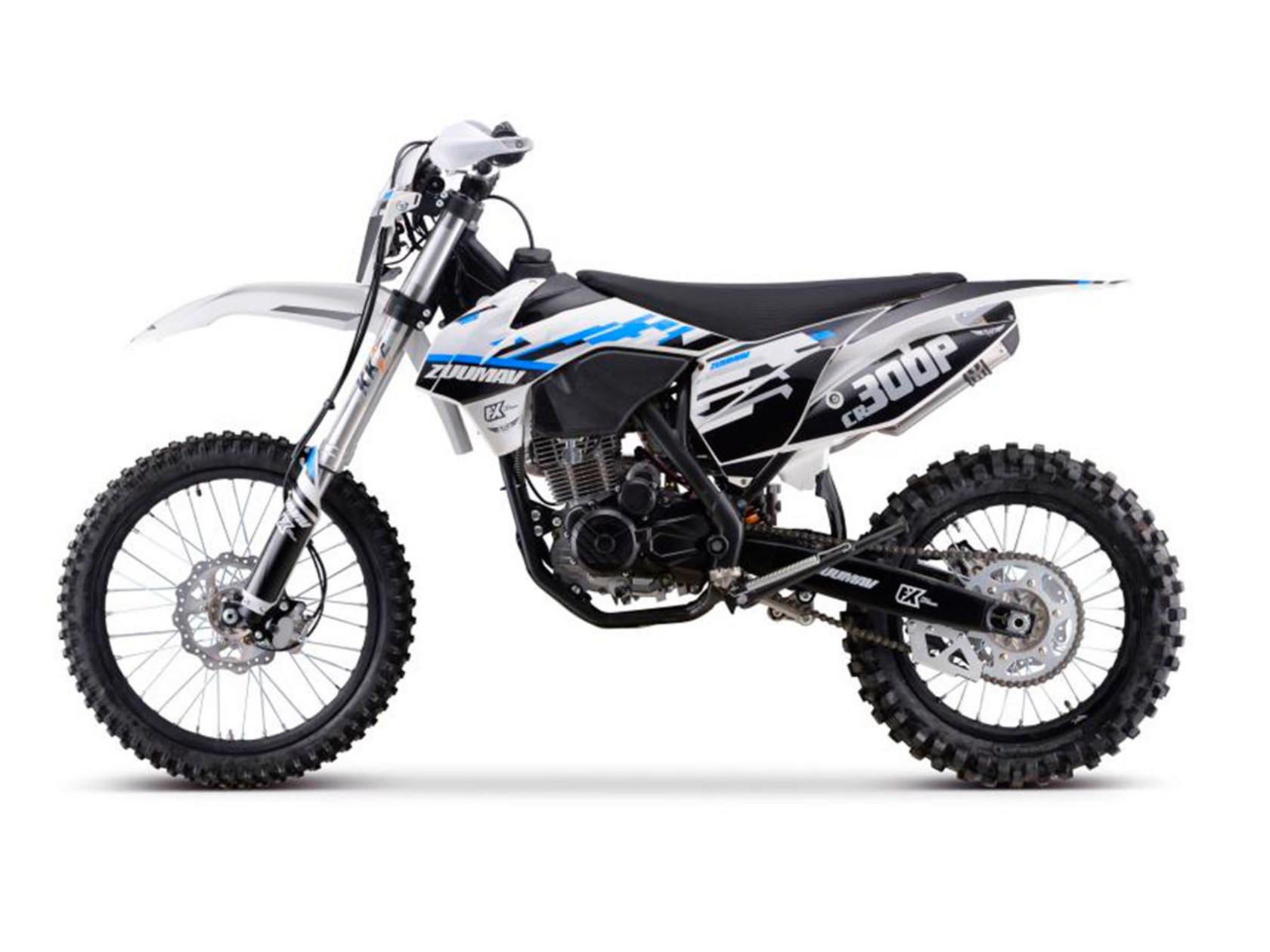 Модель ZUUMAV FX CR300P ,Двигатель 4Т, HS174YMN 300 куб.мощность 27 л.с., воздушное охлаждение,Рама AJ1 хром-молибденовая повышенной прочности, КПП -5 скоростей,Легкий выжим сцепления AJ1*,Карбюратор NIBBI RACING PWK30 ЧЕРНЫЙ, алюминиевый глушитель FMF,Выхлопная система из нержавеющей стали с резонатором,Толстостенный увеличенный черный бак на 7,5 литра,Трехпозиционный ключ зажигания, Цифровой дисплей,электро и кикстартер, Алюминиевый руль 28/22, Короткоходная ручка газа,Складные рычаги сцепления и тормоза CNC. Защита рук усиленная,Передняя вилка ККЕ, полностью регулируемая, задний амортизатор ККЕ регулируемый с Алюминиевой прогрессией , Алюминиевые усиленные обода , Ступицы aluminum, БуксаторыAJ1 облегченные из композитных материалов, усиленные спицы 4 мм.,Передняя покрышка 80/100-21,Задняя покрышка 110/100-18 YUANXING off-road, Вес 115 кг.Антискользящие сиденье. Диодная фара,Щиток номера,Комплект жиклеров,Звезды 13/51, Цепь SFR 520. Подшипники Тайвань,Алюминиевая защита двигателя.