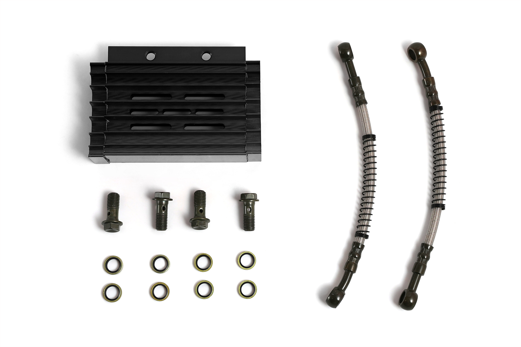 • Высококачественный комплект радиатора масляного охлаждения с корпусом из прочного CNC-обработанного алюминия в стильном чёрном анодированном цвете. Разработан для установки на 90% питбайков и мопедов с объёмом двигателя от 125 до 190 см³. Обеспечивает эффективное охлаждение масла, защищая двигатель от перегрева и увеличивая его ресурс, особенно при повышенных нагрузках.