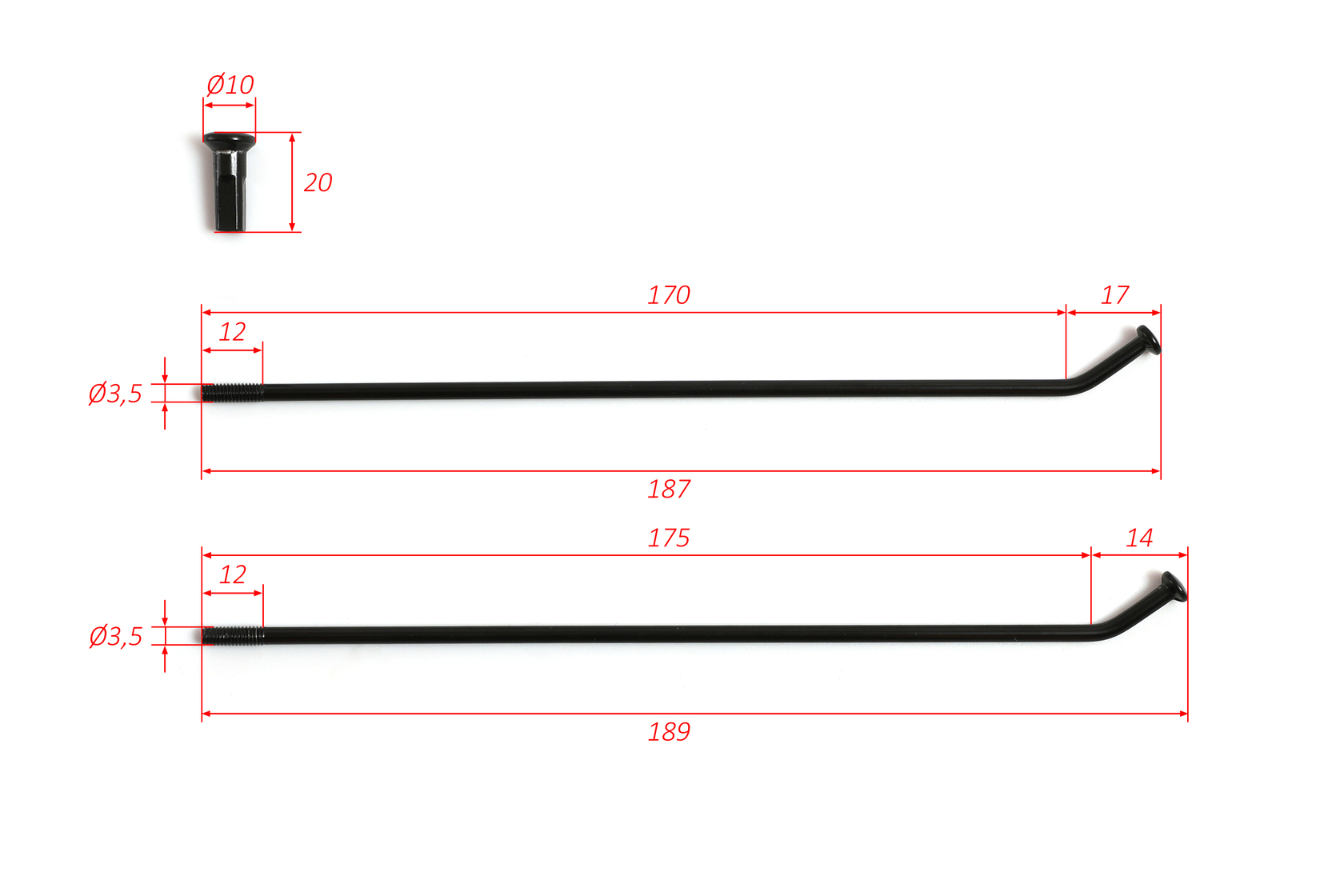 Главная ... Спицы, буксаторы, оси, втулки Спицы комплект R17 32шт. передние для питбайка усиленные (чёрные)