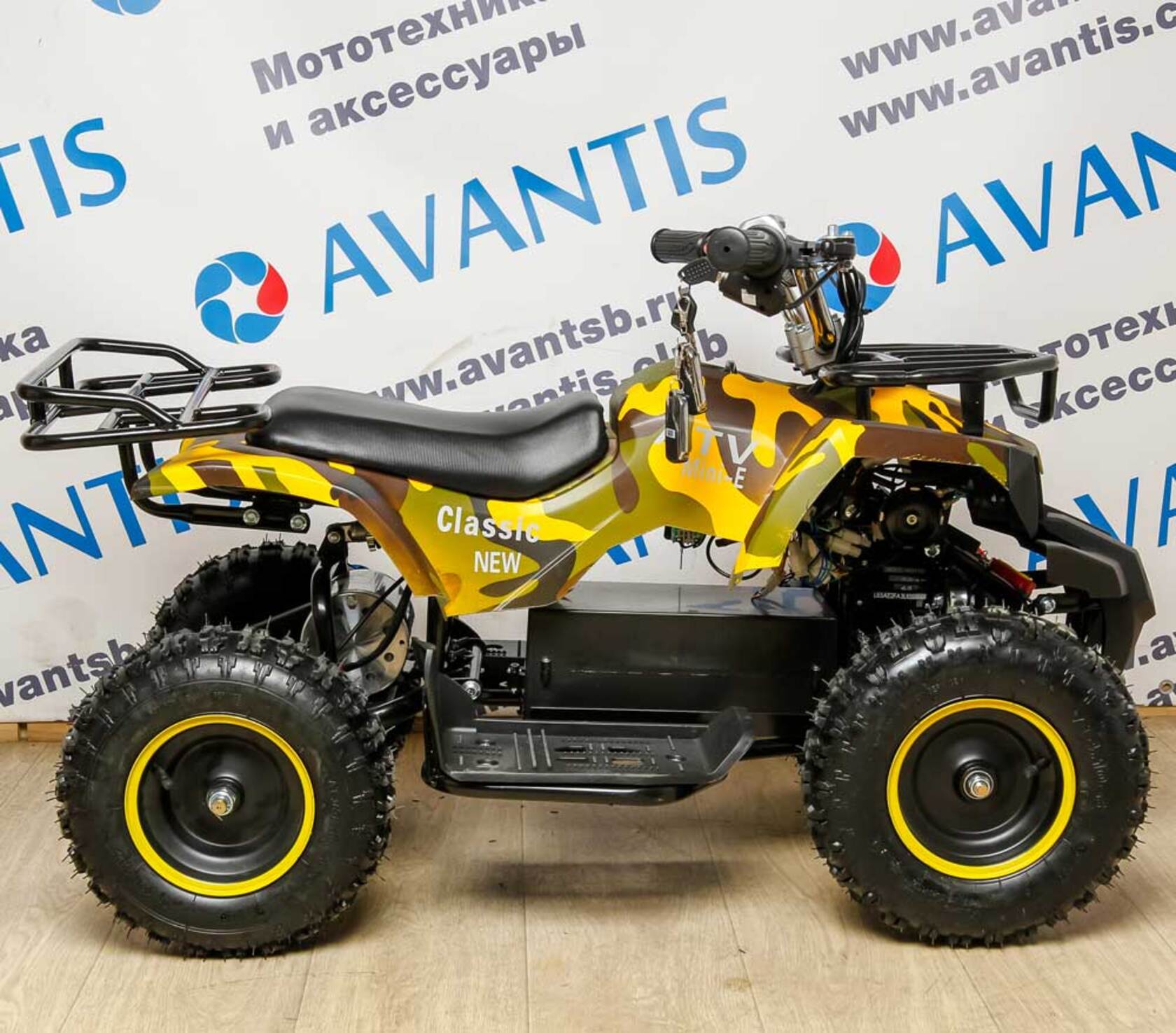 Главная ... Техника Детский квадроцикл ATV Classic 800w электрический Сафари (зеленожелтый камуфляж)
