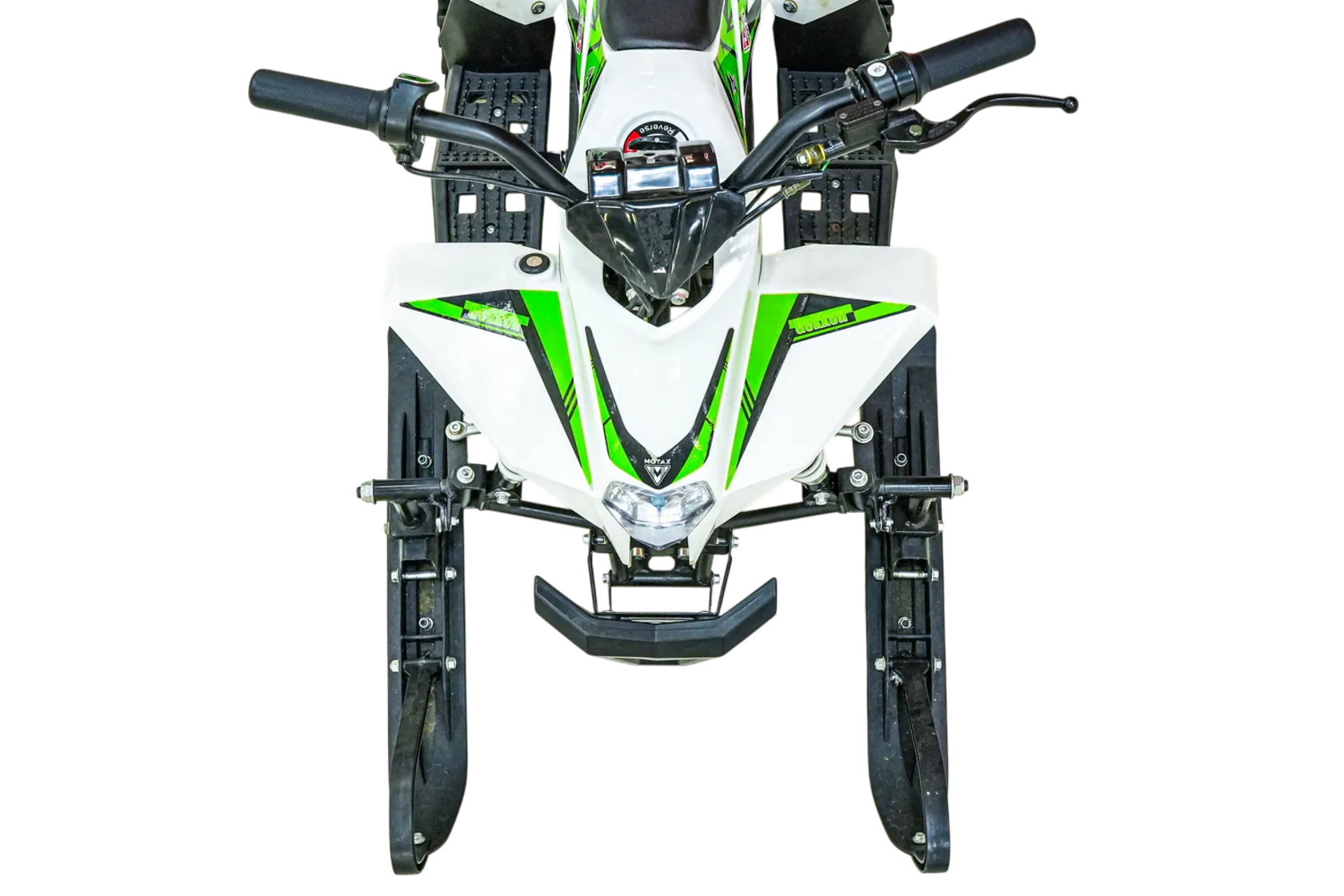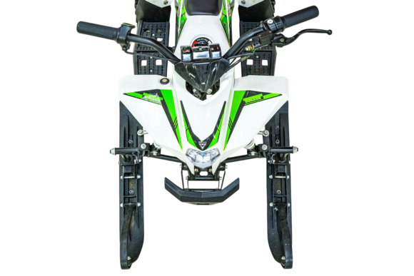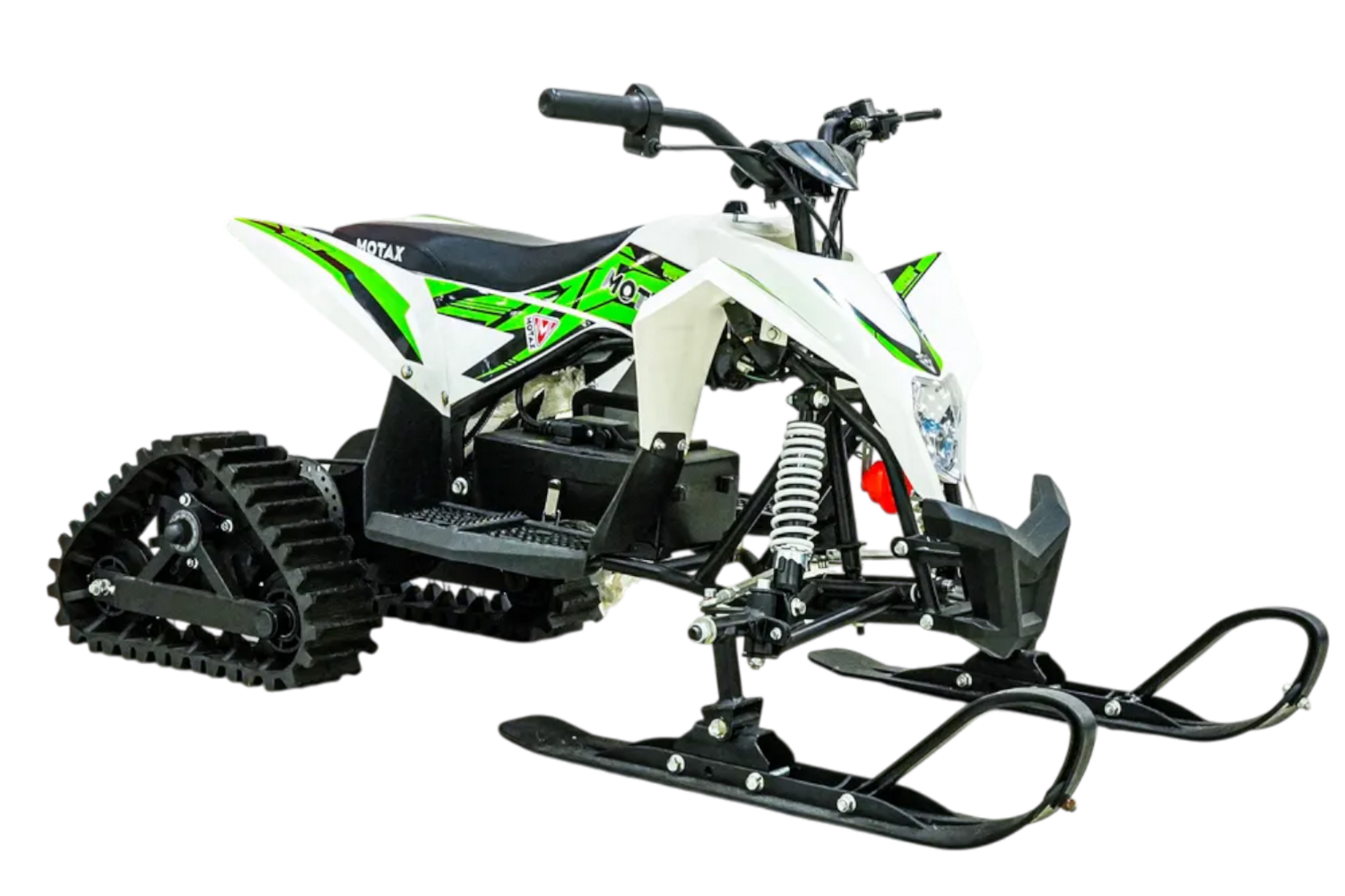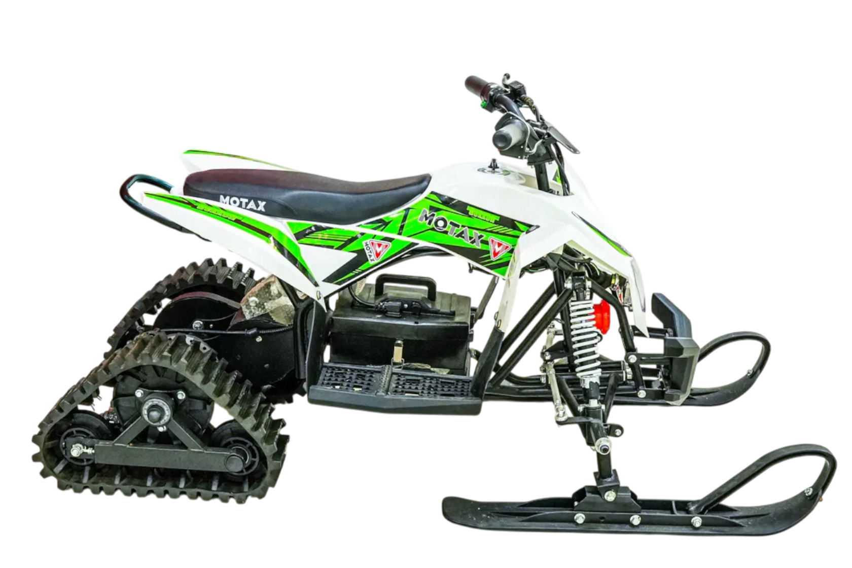 Детский Снегоцикл бензиновый MOTAX GEKKON 90 cc 1+1 (Реверс) — компактная детская модель от бренда MOTAX, созданная для первых шагов в мире зимнего отдыха. Он сочетает простоту управления, надежную конструкцию и привлекательный внешний вид — с контрастной графикой на черной раме (в красном или зеленом вариантах).Сердце снегоцикла — экономичный 4-тактный бензиновый двигатель объемом 90 см³ с электростартером, обеспечивающий плавный запуск и уверенное движение до 45 км/ч. Воздушное охлаждение и карбюраторная система подачи топлива гарантируют стабильную работу в морозную погоду.Безопасность и комфорт обеспечиваются задним дисковым тормозом, гидравлическими амортизаторами и прочной стальной рамой. Снегоцикл оснащен стоп-сигналом, звуковым сигналом и чеком аварийной остановки двигателя. Благодаря продуманным размерам и дорожному просвету 130 мм модель подходит детям ростом от 120 до 160 см и выдерживает нагрузку до 65 кг — идеальный выбор для активных зимних прогулок и обучения езде по снегу.
