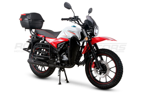 ROCKOT QUEST 150 - новый, дорожный мотоцикл от компании ROCKOT-MOTORS, с большим потенциалом на длительные поездки, независимо от типа дорожного покрытия. Благодаря своим компактным размерам, короткой колесной базе, мотоцикл отлично чувствует себя в городской среде с большим объемом дорожного трафика. Максимальная скорость ROCKOT QUEST 150 - до 92 км/ч на стандартных приводных звездах. Масса мотоцикла -126 килограмм, но при небольшой высоте по седлу в 820 мм и низкому центру тяжести, он ощущается достаточно легким.Мотоцикл имеет ЭПТС, оснащен цветной электронной панелью приборов, зеркалами, всей необходимой светотехникой, что позволяет законно передвигаться по дорогам общего пользования. ДизайнМотоцикл построен в классическом исполнении, но имеет множество современных, технологичных решений.Все световые приборы - светодиодные и очень яркие. Передняя фара имеет круглую классическую форму, но стоит ее включить, как мотоцикл обретает совершенно другой вид.Цветовая гамма модели имеет три варианта окраски: бело-красный, черный и серый.Конечно же, бросается в глаза оснащение мотоцикла туристической багажной системой. На заднем багажнике установлен жесткий центральный кофр. Откидные боковые багажники, позволяют перевозить объемный груз, а также устанавливать боковые багажные сумки. Глядя на мотоцикл, складывается впечатление, что все его пространство использовано максимально практично. Даже в дугах безопасности встроены дополнительные багажные карманы.Топливная системаВ основе топливной системы ROCKOT QUEST 150 - большой топливный бак объемом 12 литров. В зависимости от условий эксплуатации и стиля езды, расход топлива варьируется в районе 3-3,5 литров на 100 километров. Это позволяет преодолевать большие расстояния на одном баке бензина. Используемый тип топлива - бензин АИ-92. Образует топливную смесь - карбюратор PZ27 с ускорительным насосом. Ускорительный насос исключает момент “провала” при резком открытии дроссельной заслонки.Тормозная системаПо канонам классического мотоциклостроения, ROCKOT QUEST 150 имеет комбинированную тормозную систему. Спереди установлен дисковый гидравлический тормоз, с двухпоршневым суппортом, яркого красного цвета. Задний тормоз - механический, барабанный.Кому подойдет ROCKOT QUEST 150Мотоцикл будет очень полезен новичкам. Его небольшие габаритные размеры, низкий центр тяжести, малая высота по седлу - позволяют быстро освоить технику управления мотоциклом как в условиях города, так и бездорожья. С практичной точки зрения, мотоцикл понравится любителям выезжать на отдых за город. Отличная туристическая подготовка, позволит перевозить все, что Вам может потребоваться во время отдыха.Благодаря заложенной надежности в конструкцию двигателя и мотоцикла - ROCKOT QUEST 150 оценит старшее поколение, для кого требуется простая и надежная техника..