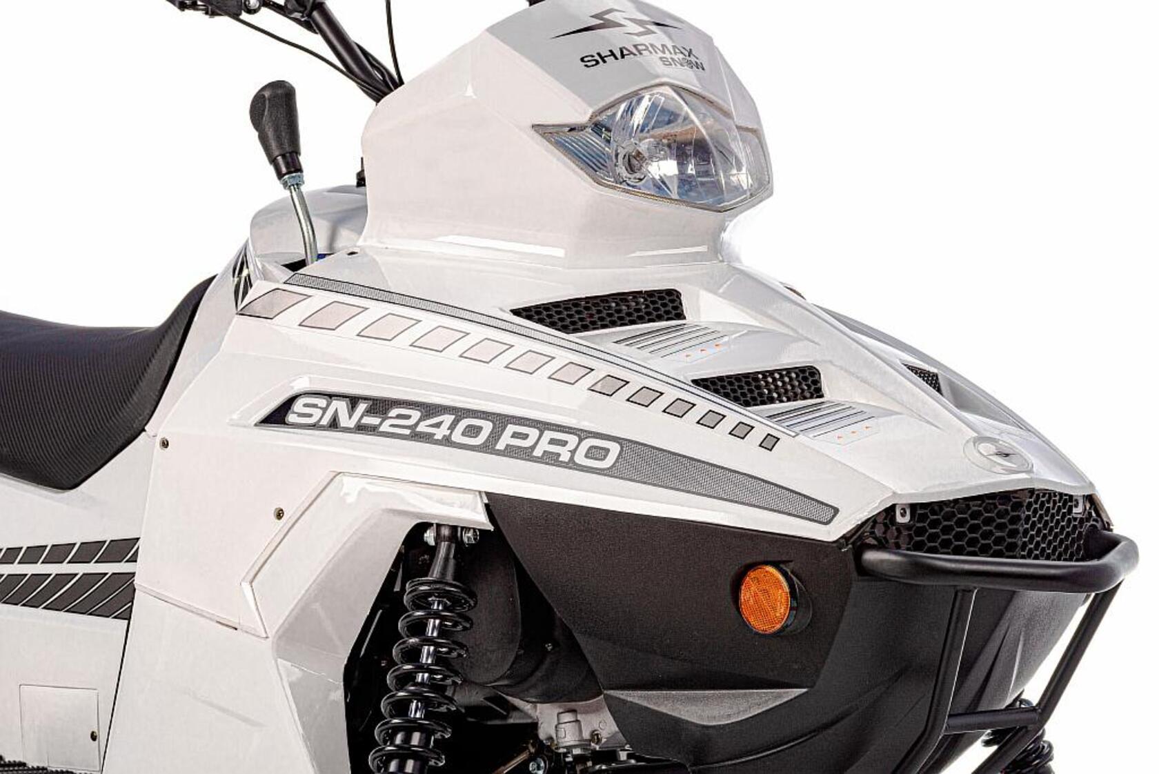 Инновации и передовые технологии, которые воплотил в данной модели снегоходов SN-240PRO Landcrafter известный на мировом рынке машиностроительный концерн Sharmax достойны высших похвал. Данный снегоход обладает рядом преимуществ, что выделяет его среди других моделей, представленных на рынке. Sharmax Landcrafter при загрузке в 170кг способен с легкостью развивать максимальную скорость в 50 км/ч по среднему снегу. Этому способствует мощный резино-тканиевый армированный гусеничный трак шириной 310 мм, обеспечивающий давление на снежный покров в глубину до 880мм и двигатель объемом 200 см³, который выдает 12 лошадиных сил.При небольшом весе снегохода всего в 170кг транспортировка техники к месту использования будет достаточно простой. А запаса хода снегохода Sharmax Landcrafter при полном баке без дозаправки и на максимальных оборотах хватит на 80-90 км пути.Sharmax Landcrafter в базовой комплектации оборудован информативной LSD панелью, способную предоставить подробную информацию даже при ярком солнечном свете, что весьма удобно на пересеченной местности. Также снегоход оборудован вместительным багажником и дополнительными креплениями по обеим сторонам и сзади для крепления груза и буксировки саней.Снегоход Sharmax очень маневренный и довольно простой в управлении. С ним справится даже новичок.