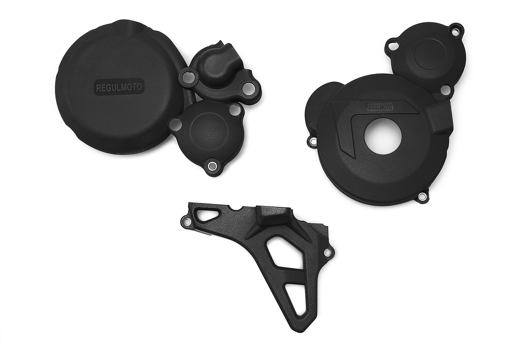 • Полный комплект защитных крышек из вязкого пластика для двигателей Zongshen серии ZS174MN: ZS174MN-3A (CBS300) и ZS174MN-5A (NB300). Включает три крышки, закрывающие основные боковые узлы: левую сторону (генератор), правую сторону (сцепление и помпу) и крышка ведущей звезды. Предназначен для придания двигателю аккуратного, спортивного вида и защиты от грязи и мелких повреждений. Крепёжные болты в комплект не входят. Важно: комплект совместим только с указанными двигателями, и установка правой крышки имеет особенность в зависимости от ориентации помпы.