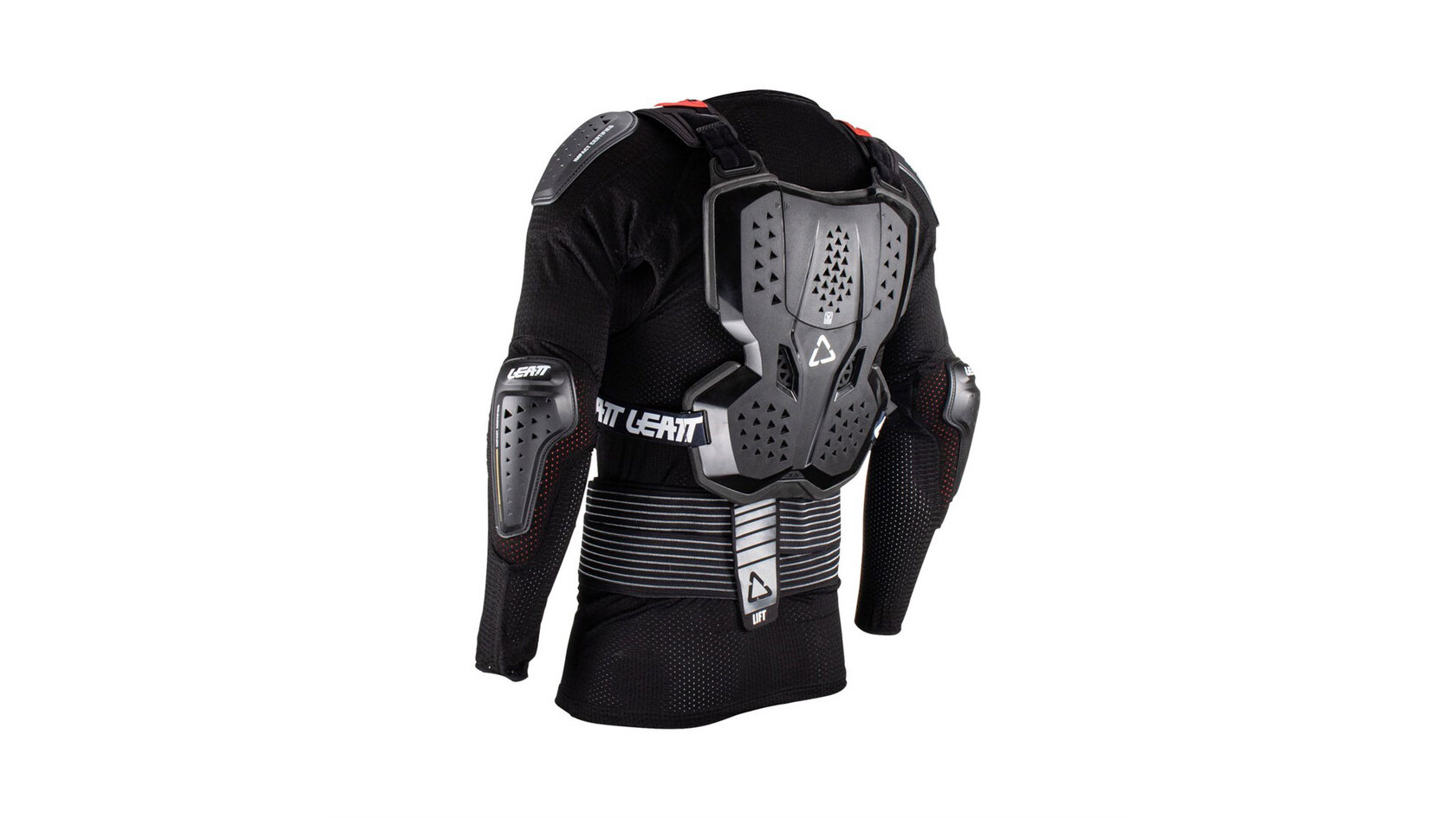 Панцирь Leatt Body Protector 3.5 состоит из двух частей: сначала надевается обтягивающая основа на молнии со встроенной защитой локтей, плеч и компрессионным поясом, а затем жесткий панцирь с защитой груди и спины.Такая модульная система не только обеспечивает хороший уровень защиты, но и прекрасно вентилируется, сохраняя комфортную температуру. Также такой подход облегчает надевание, снятие и мойку экипировки после длинного дня катания. Совместимо с защитой шеи Leatt.