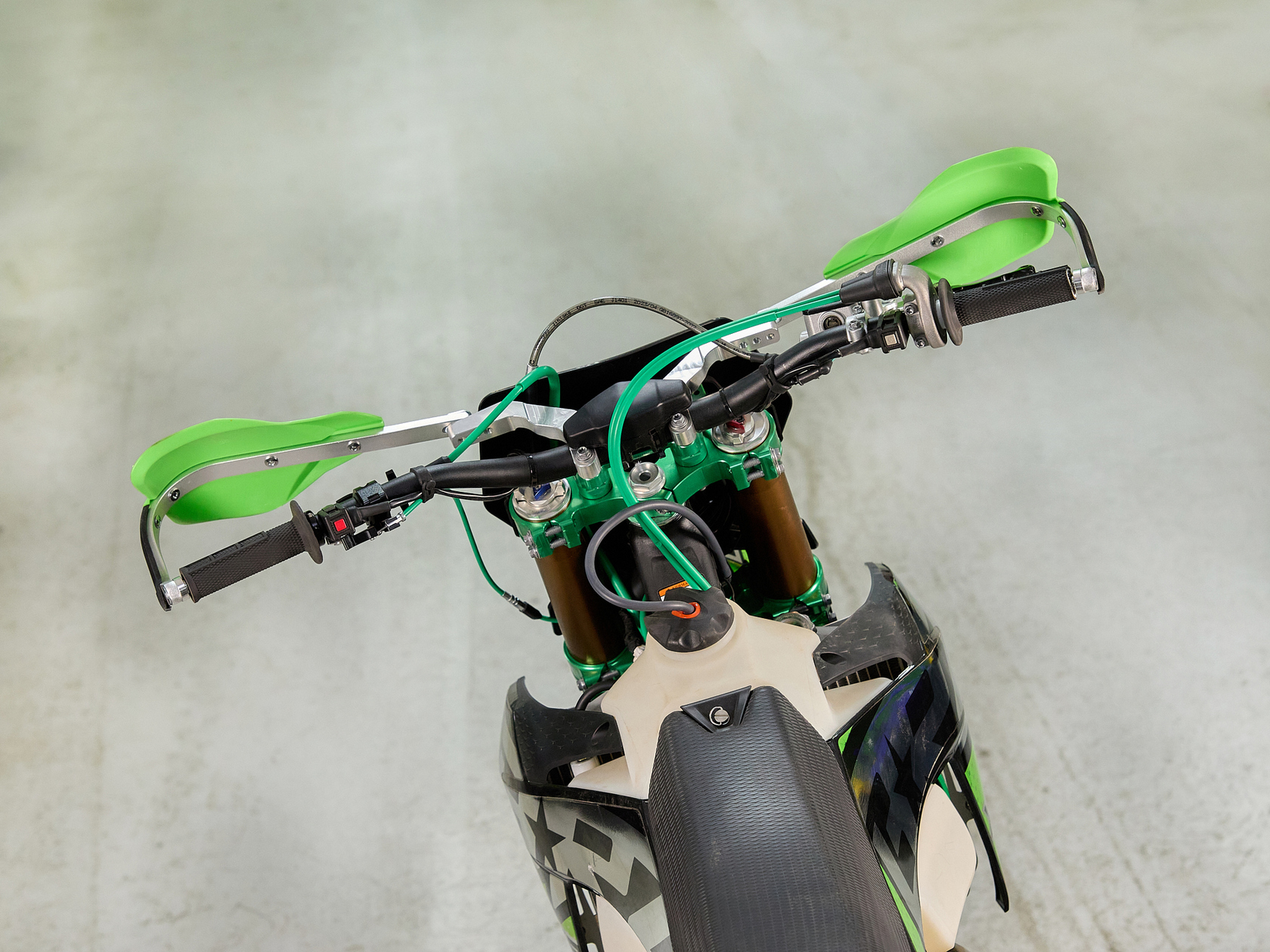 ДОПы Руль 28мм. Короткоходная ручка газа. Цепь 520. Алюминиевая лапка КПП, боковые накладки на рамы. Счетчик моточасов, приборная панель. Стоп сигнал.