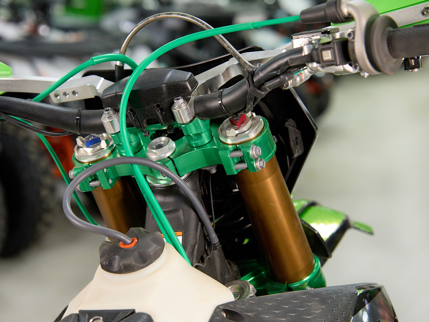 Навесное – Руль 28мм. Короткоходная ручка газа. Цепь 520. Алюминиевая лапка КПП, боковые накладки на рамы. Счетчик моточасов, приборная панель. Стоп сигнал.