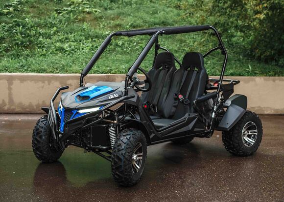 Четырехместный баггиДля тех, кто любит путешествовать компанией по бездорожью, представлен четырехместный багги – мощный, вместительный и готовый к любым испытаниям.Сердце багги – надежный V-образный двухцилиндровый двигатель (799 см³, 59 л.с.) с жидкостным охлаждением, обеспечивающий стабильную работу в самых сложных условиях. Использует АИ-92, что делает эксплуатацию экономичной.Превосходная проходимость – благодаря вариаторной трансмиссии с возможностью переключения между 2WD и 4WD и передним дифференциалом. Независимая подвеска с двойными А-образными рычагами и ходом 110 мм (спереди) / 95 мм (сзади) гарантирует плавный ход по бездорожью. Опционально доступны азотные амортизаторы для повышенной выносливости.26-дюймовые шины (26x10 R14) с легкосплавными дисками и гидравлическими тормозами обеспечивают уверенное движение и контроль в любых условиях. Клиренс 29 см позволяет преодолевать серьезные препятствия, а электрическая лебедка на 1600 кг выручит в сложных ситуациях.Комфорт и управляемость:Электроусилитель руля (EPS) – легкое и точное управление.
