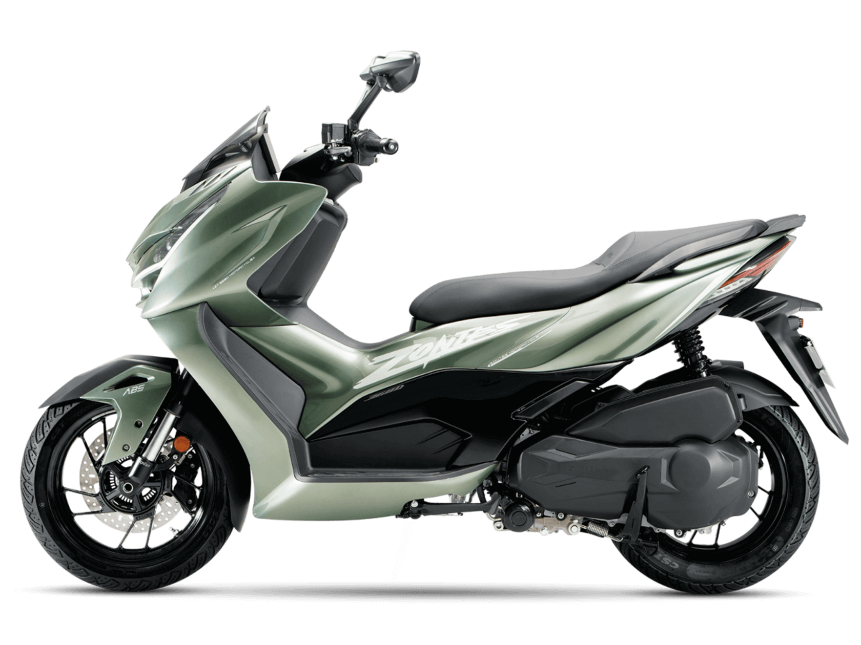 Колёсная база 1560 мм обеспечивает высокую устойчивость в поездках. На скутер установлены колёса с легкосплавными литыми дисками диаметром 15 дюймов спереди и 14 дюймов сзади. В прохождении неровностей помогает клиренс 150 мм. В версии 2026 года обновились амортизаторы: спереди установлена телескопическая вилка производства MZKS, а задние амортизаторы обзавелись 5-ступенчатой регулировкой преднатяга. Ход подвески составляет 105 мм спереди и 94 мм сзади. На оба колеса установлены гидравлические дисковые тормоза от J.JUAN (холдинг BREMBO). Передний тормоз имеет диск диаметром 276 мм и 4-поршневой суппорт, а для заднего используется диск 240 мм и однопоршневой суппорт с плавающей скобой. Системы TCS и ABS от BOSCH повышают устойчивость в экстренных ситуациях и обеспечивают высокий уровень безопасности райдера.