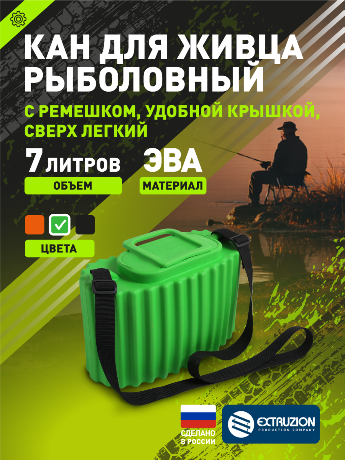 • Рыболовный кан ЭКСТРУЗИОН 7 л (ЭВА) — компактное и надежное хранение живца