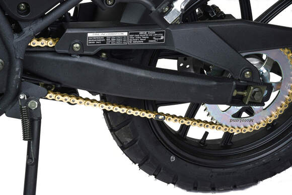 Комплектация «Холодильник» приемной трубы глушителя с защитой от ожогов, cедло с противоскользящим покрытием, руль Fatbar 28”,глушитель алюминиевый прямоточный.Лапка тормоза, верхнего расположения, с эксцентриковой регулировкой.Откидывающаяся подножка водителя для легкого запуска двигателя кикстартером.Гидравлические, дисковые тормоза.
