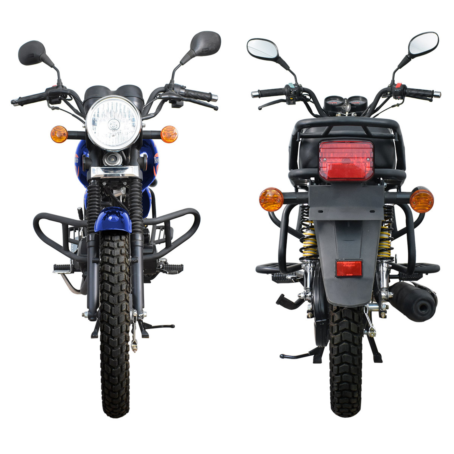 Комплектация Дуги безопасности, проверенные временем барабанные тормоза на переднем и заднем колесах, защитный кожух цепи, широкое и длинное сиденье и интегрированные в раму пассажирские подножки. Цепь 428Н.