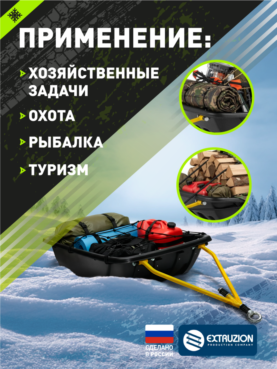 • Надежные сани-прицеп для снегоходов и мотобуксировщиков, готовые к работе в самых суровых зимних условиях. Идеальный баланс объема и маневренности.