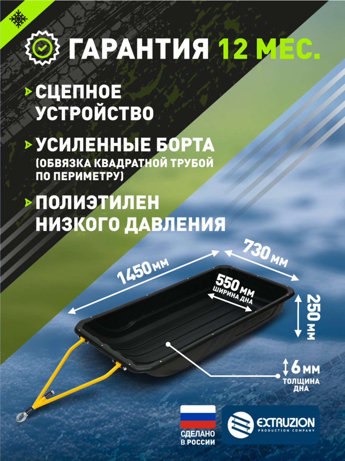 Главная ... Сани для зимней техники Сани волокуши с обвязкой (без полозьев) С-6 LUXE (1450x730x250) для снегохода, мотобуксировщика, рыбалки, охоты. Ширина дна 550.
