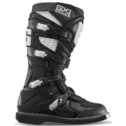 Ботинки GX1 оснащены совершенно новой подошвой G.Light Welt Sole, обладающей такими же характеристиками, что и износостойкие ботинки Goodyear, но в совершенно новом стиле.Подошва изготовлена из высококачественной резины для лучшего сцепления, она тонкая и гибкая для чувства тормоза и передач, легкая и с специальным рисунком.Мотоботы GX1 сочетают защиту и комфорт, материалы высокого качества и производство в Италии. Многослойная структура препятствует истиранию, а также защищает от скручивания. Система застежек состоит из 4 сменных пряжек из легкого сплава. Сняв первые две пряжки сверху, можно надеть ботинки на широкую ногу или защиту голени.