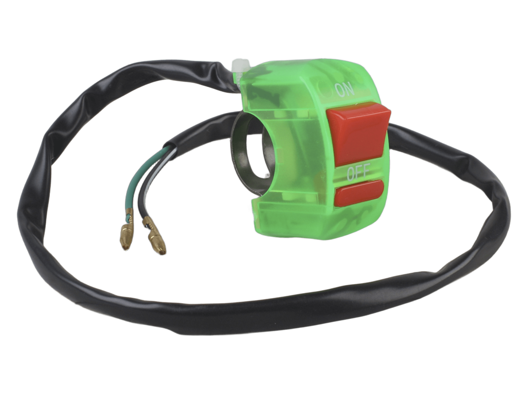 Универсальный пульт-выключатель для установки на руль мотоцикла, питбайка, скутера, квадроцикла и другой мототехники. Оснащён тремя проводами для расширенной совместимости и функциональности управления электросистемами.