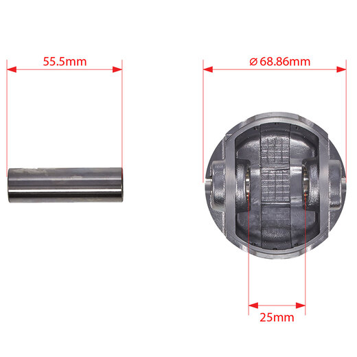 • • Фактический наружный диаметр поршня: 68.86 мм